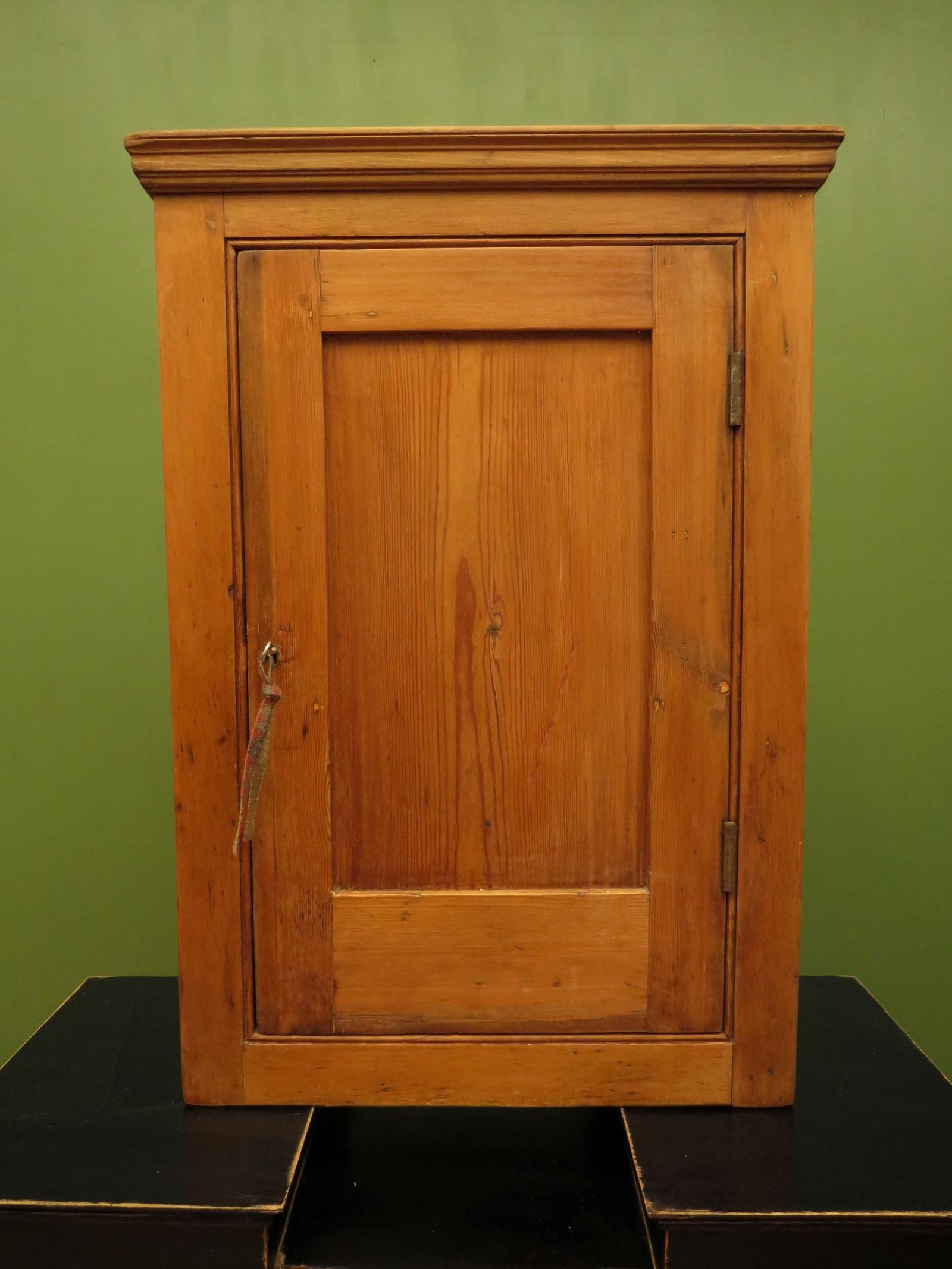 Small Antique Pine Bathroom Cupboard With Lockable Door