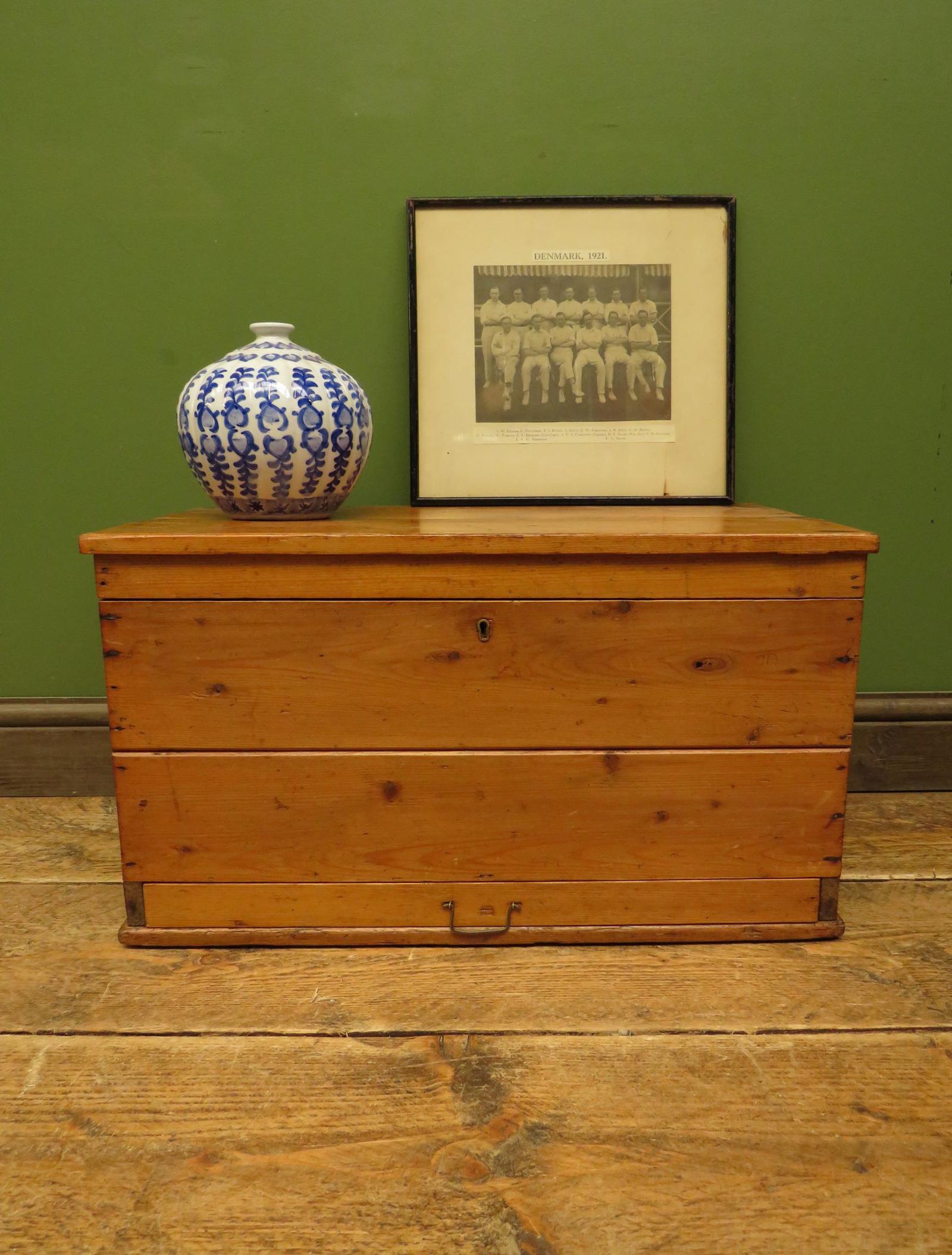 Small Antique Pine Keepsake Chest with Drawer to Base