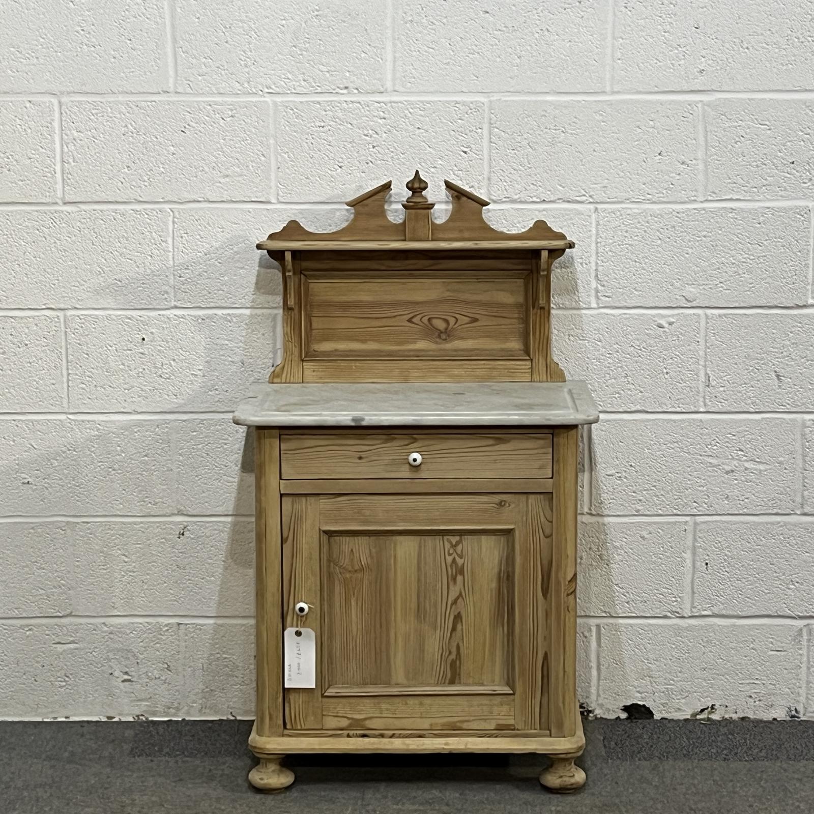 Small Antique Pine Marble Top Bathroom Cupboard (1 of 7)