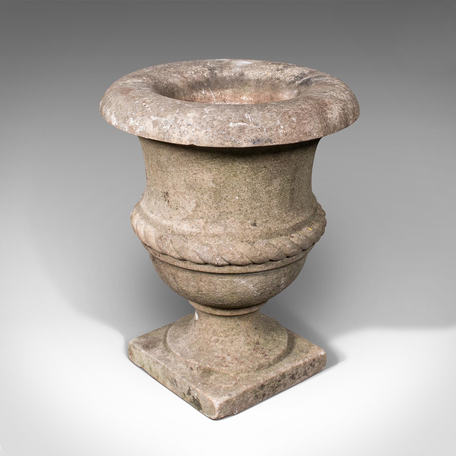 Small Antique Planting Urn, English, Weathered Marble, Jardiniere, Victorian