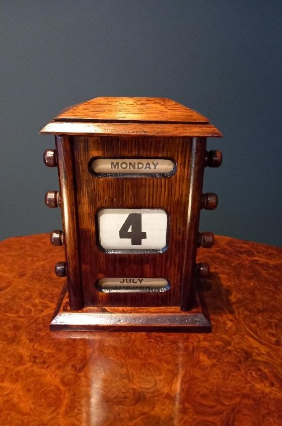 Small Antique Polished Oak Perpetual Desk Calendar