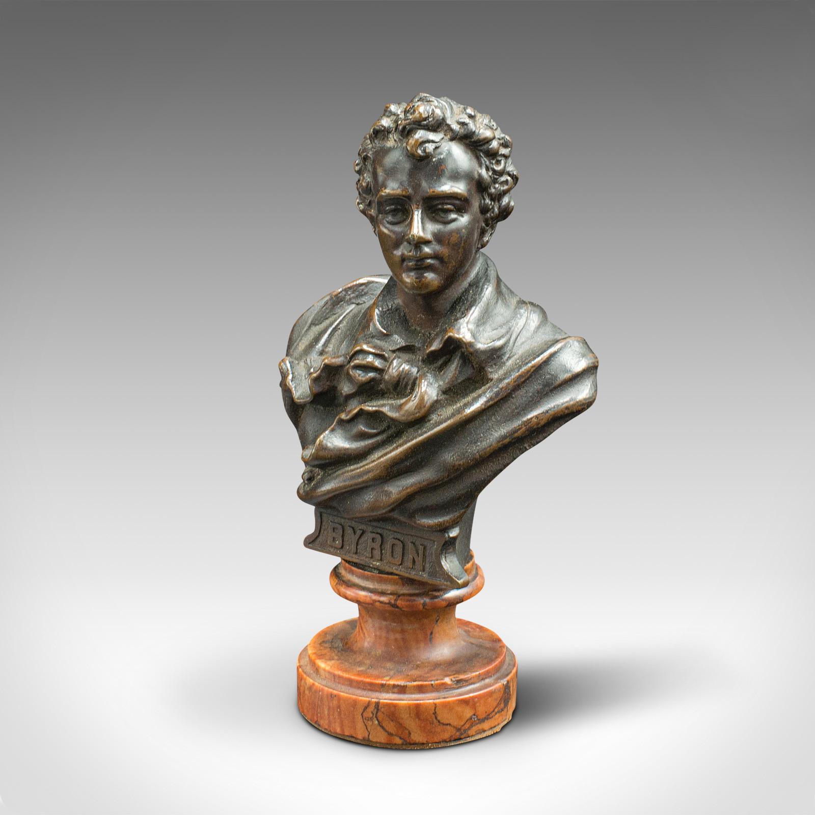 Small Antique Portrait Bust, Austrian, Bronze, Figure, Lord Byron, Victorian