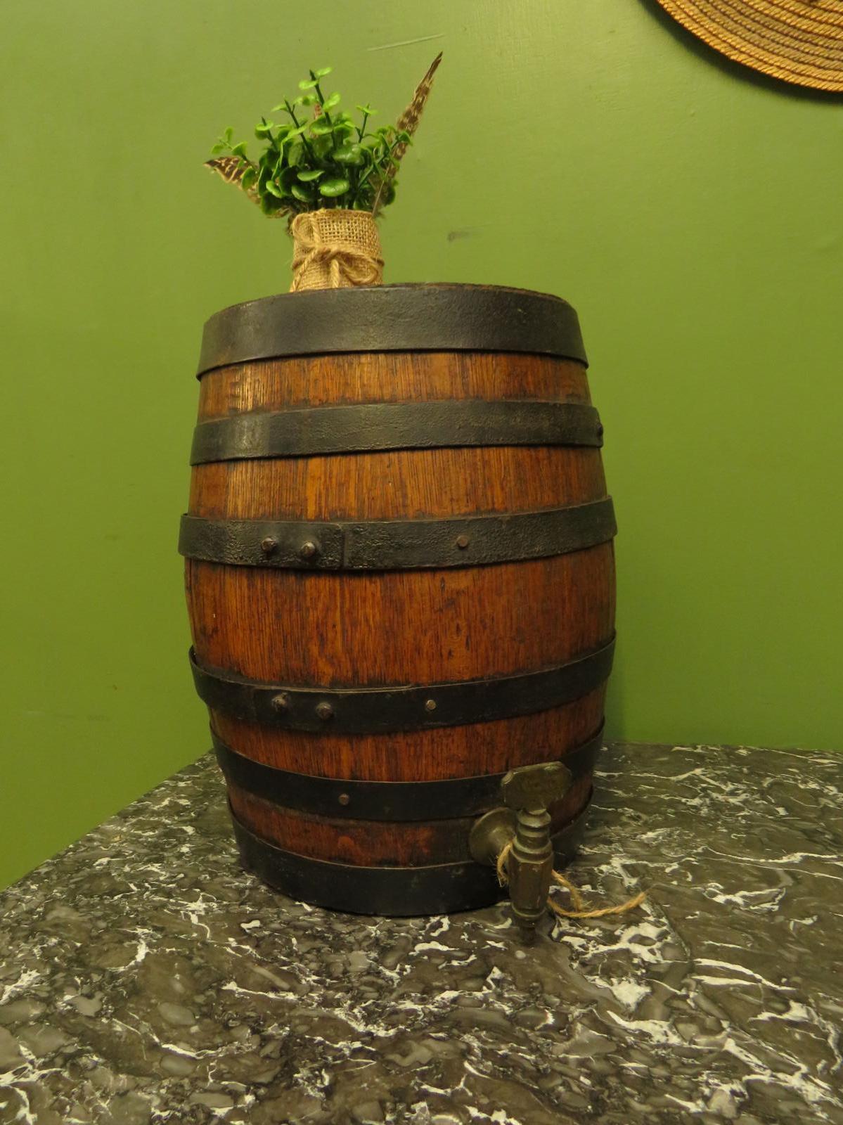 Small Antique Scottish Coopered Wooden Spirit Barrel with Stamped Brass Spigot
