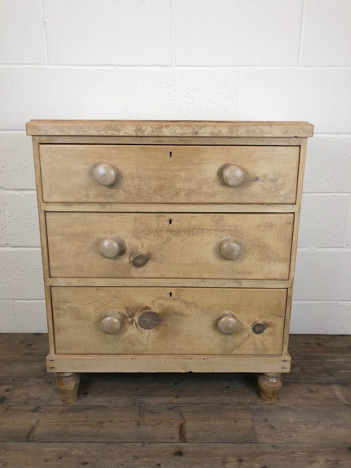 Small Antique Stripped Pine Three Drawer Chest of Drawers (1 of 1)