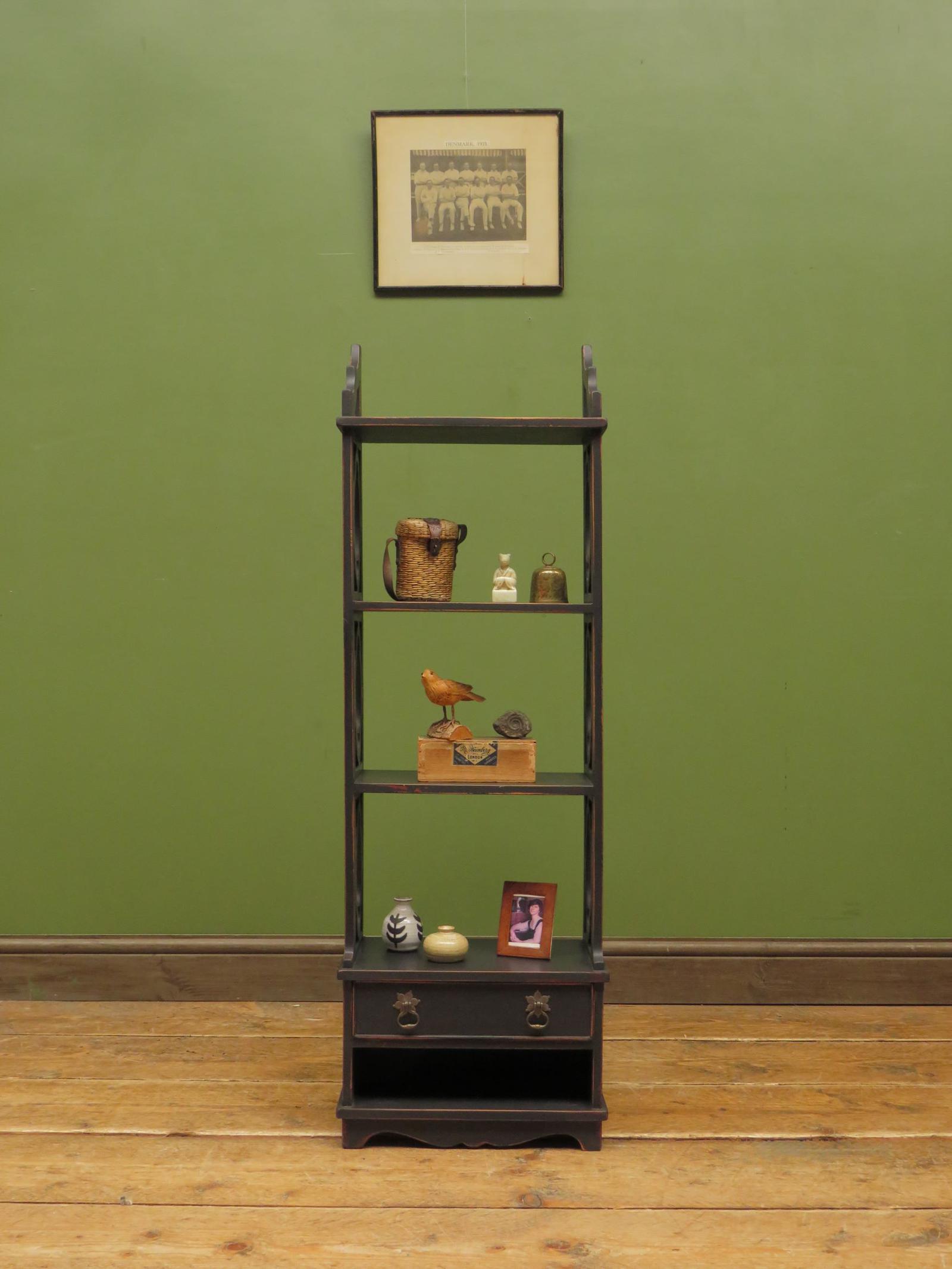 Small Antique Style Black Display Shelves, Bathroom Storage, Collectors Shelves
