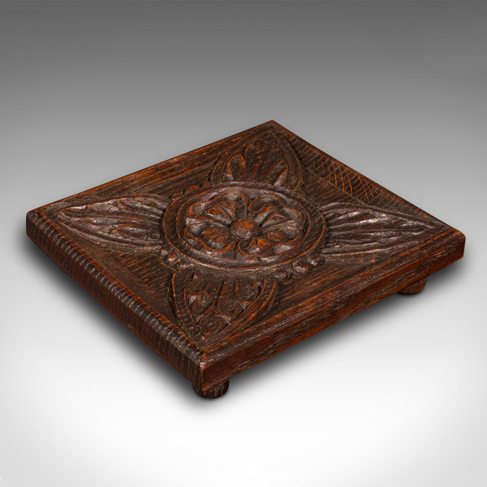 Small Antique Tea Stand, English, Carved Oak, Pot Rest, Art Nouveau, Victorian (1 of 6)