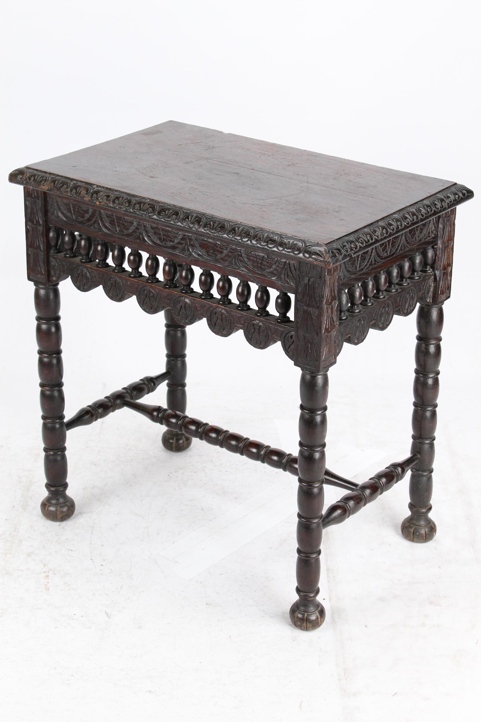 Small Antique Victorian Gothic Revival Oak Hall Table (1 of 13)