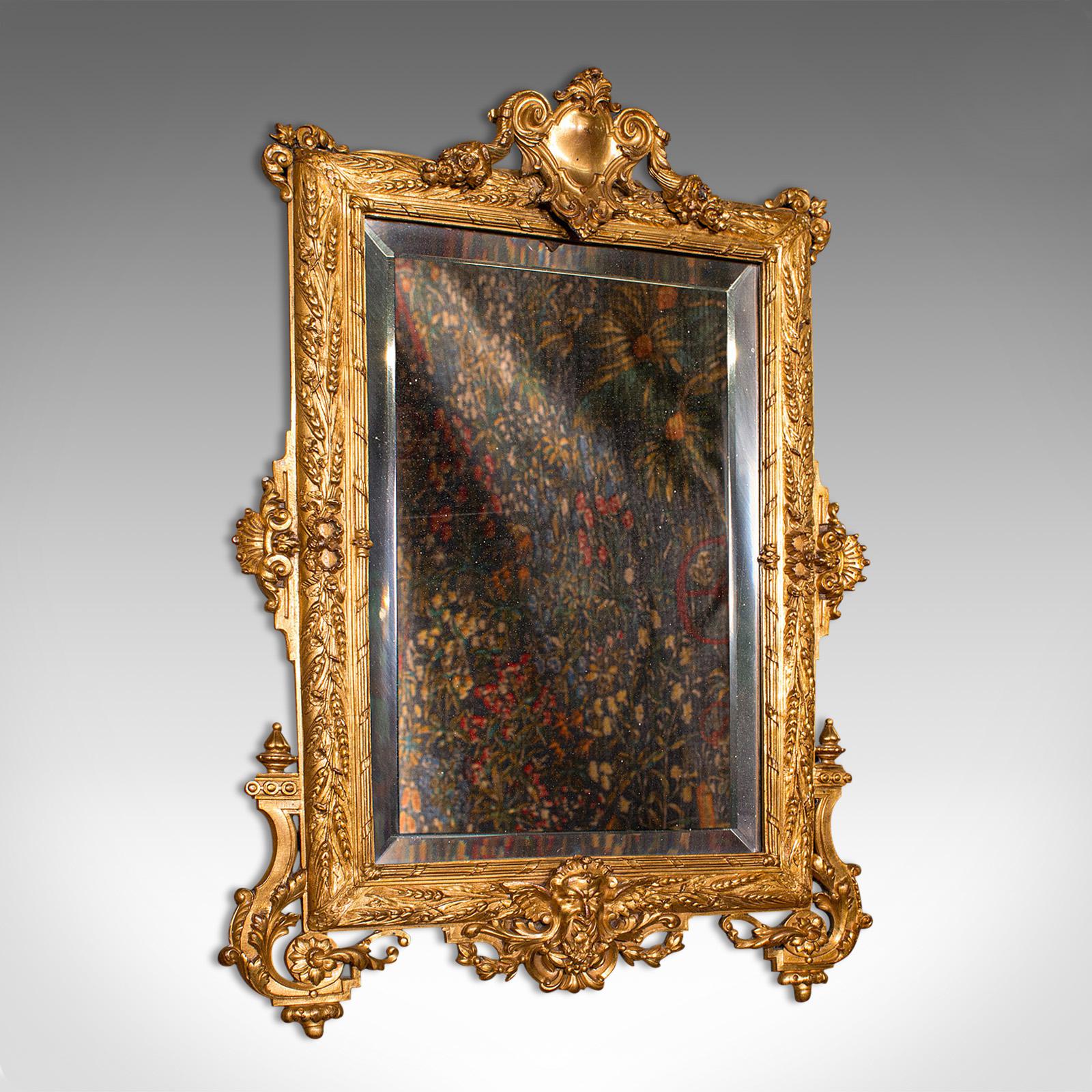 Small Antique Wall Mirror, Italian, Gilt Metal, Decorative, Victorian c.1900