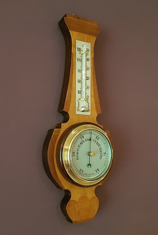 Small Antique Walnut & Yew Wood Banjo Barometer