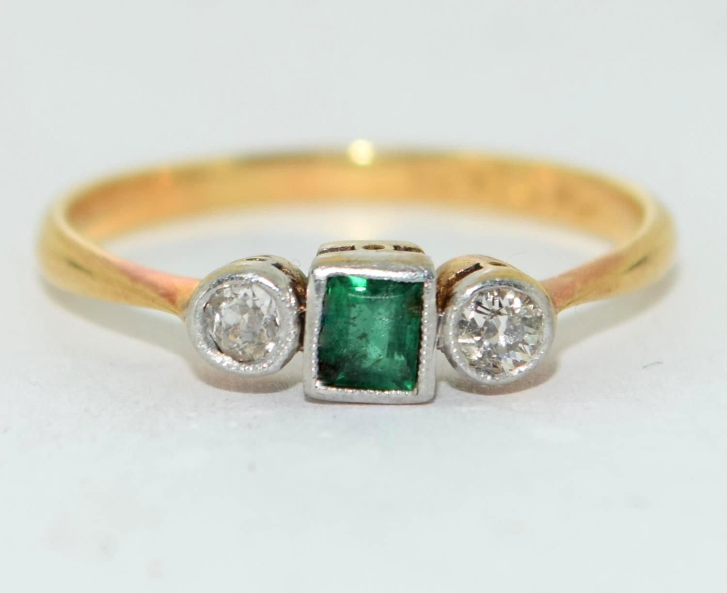 Small Art Deco 18ct Gold Platinum Emerald & Diamond Ring (1 of 10)