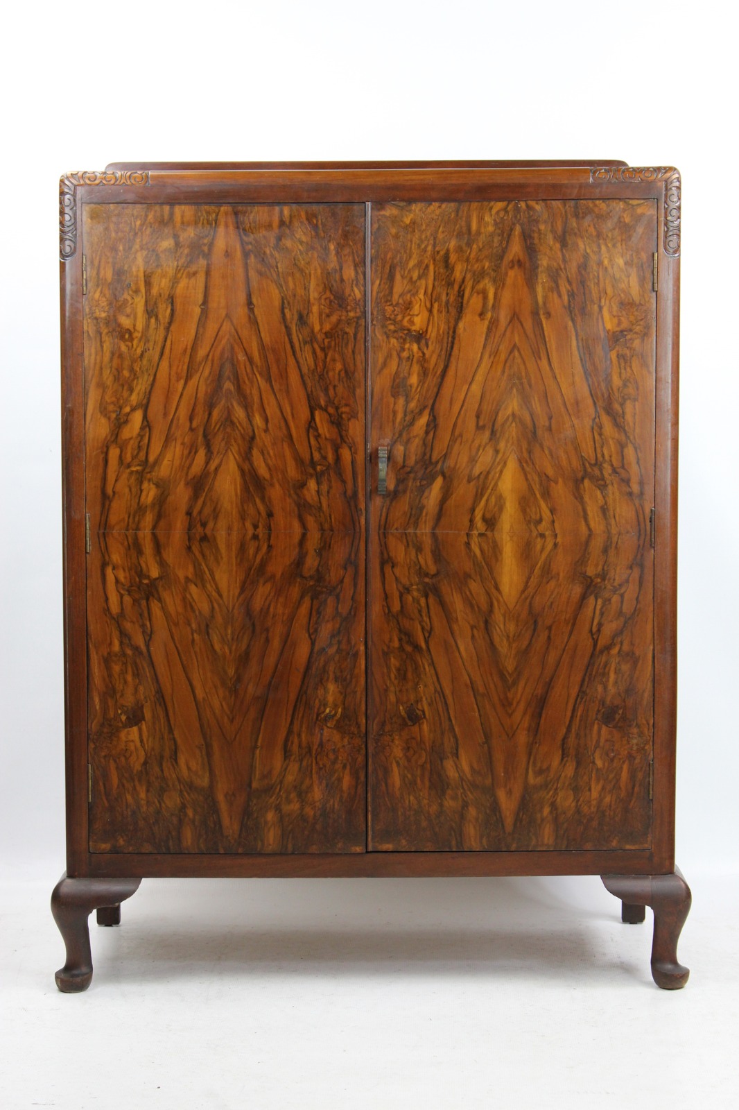 Small Art Deco Walnut Wardrobe / Cupboard (1 of 1)