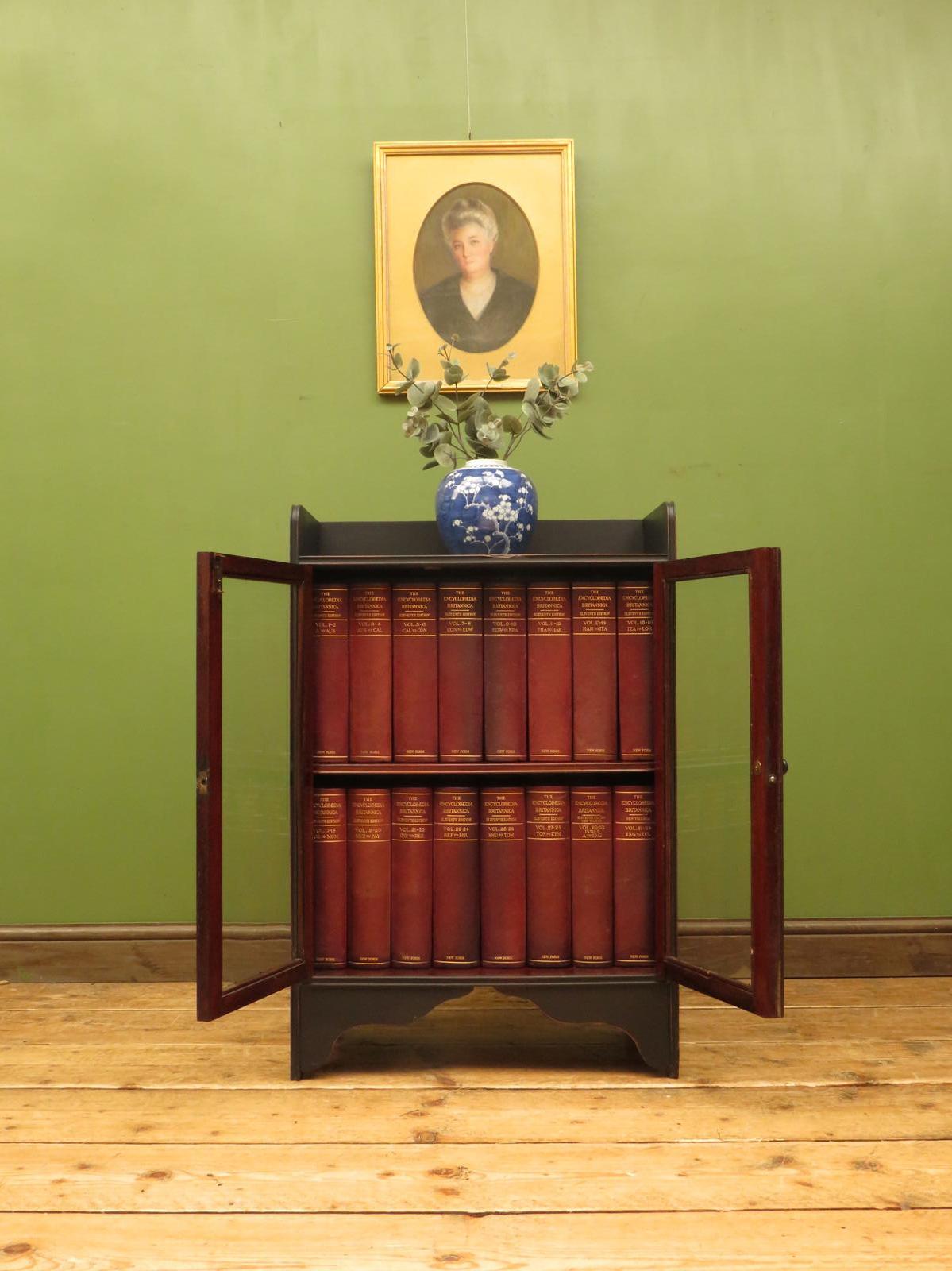 Small Black Cabinet with 11th Edition of the Encyclopedia Britannica (1910) Books