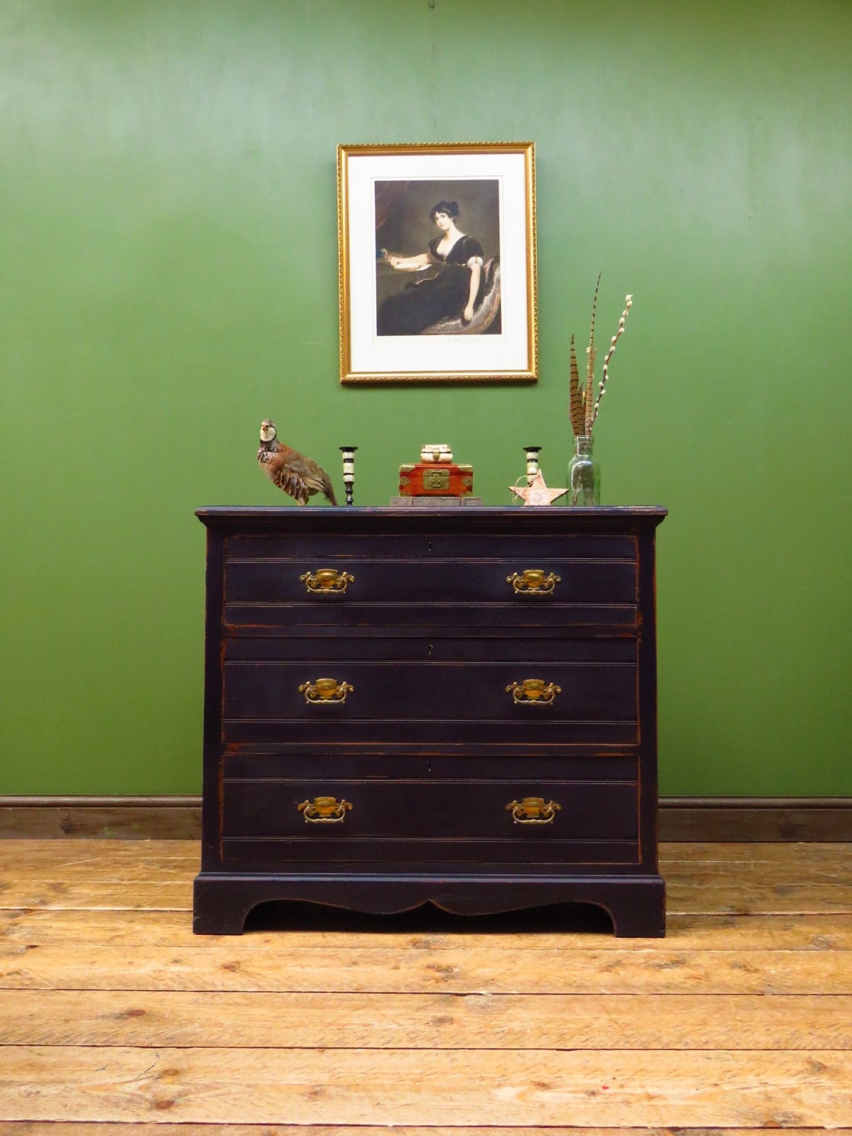Small Black Painted Chest of Drawers, Gothic Shabby Chic