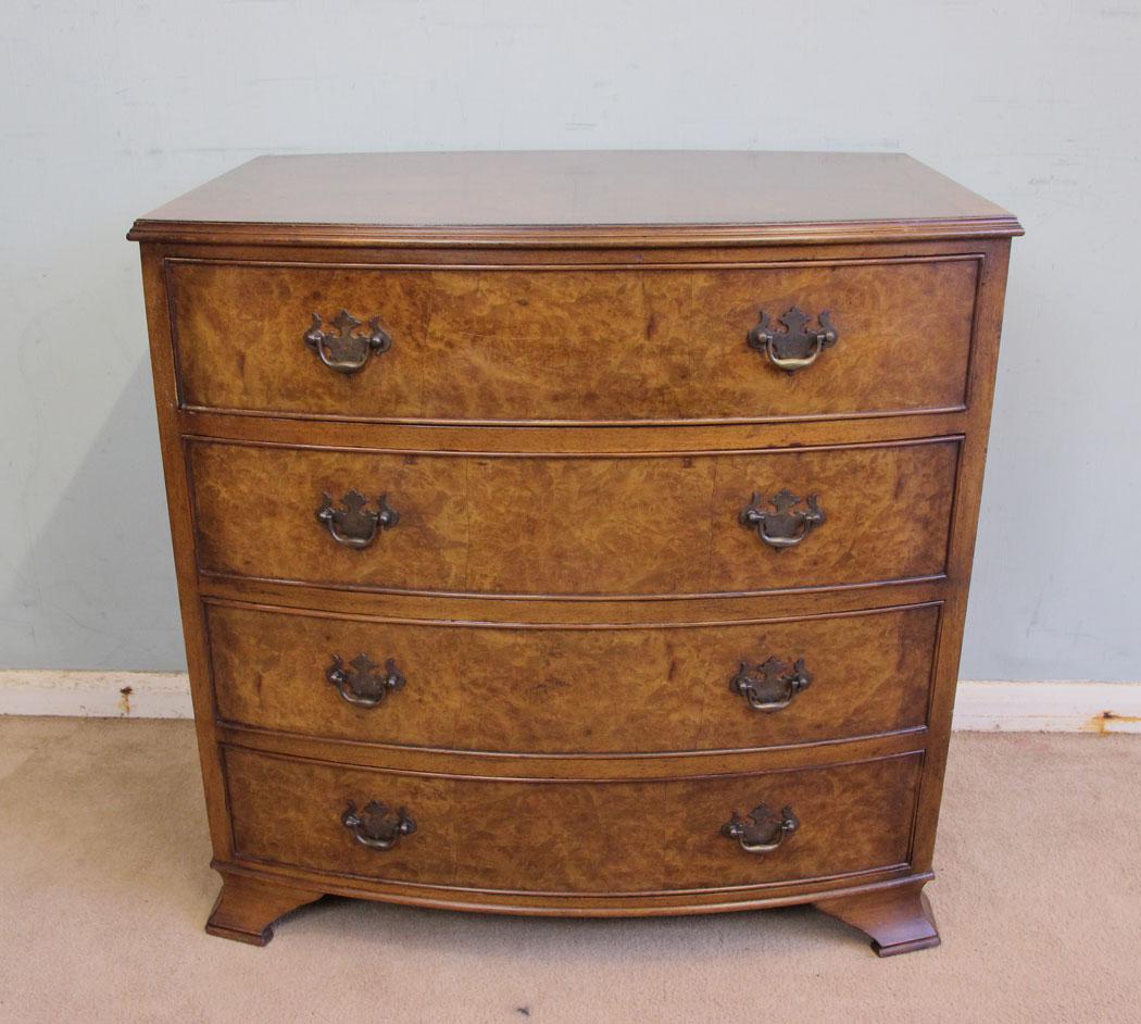Small Bow Front Burr Walnut Chest of Drawers