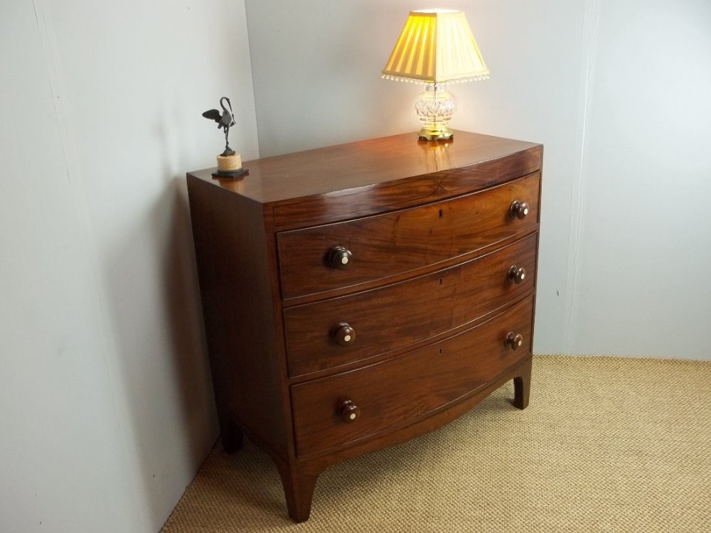 Small Bowfront Inlaid Antique Regency Caddy Top Georgian Mahogany Chest of Drawers of Bow Front Form