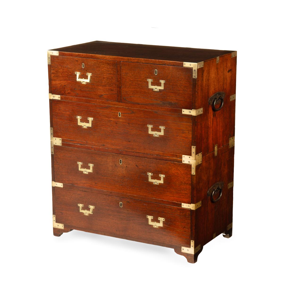 Small Brass-bound Teak Campaign Chest in Two Parts
