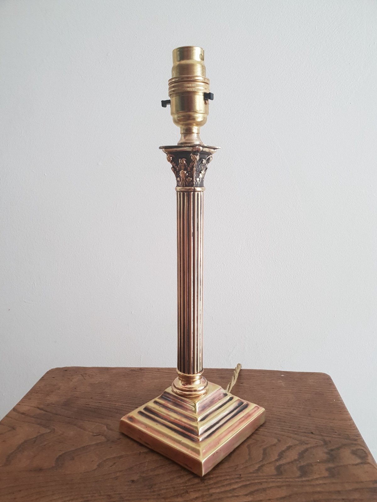Small Brass Corinthian Column Table Lamp; Rewired & Pat Tested