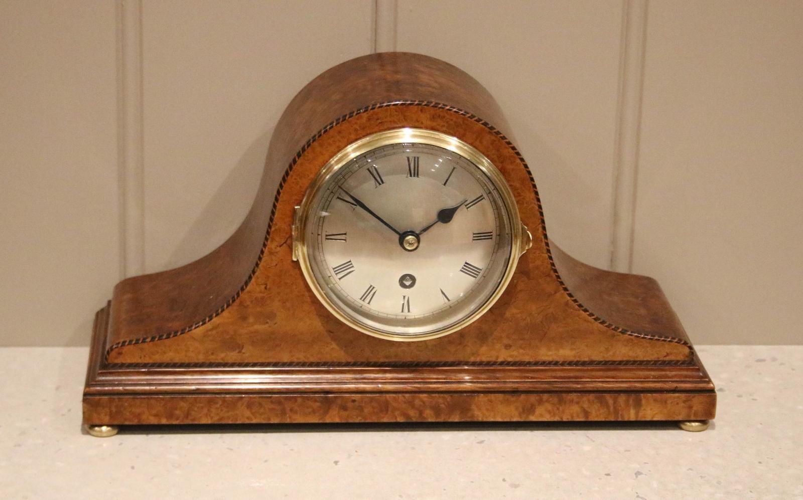 Small Burr Maple Napoleon Hat Mantel Clock (1 of 15)