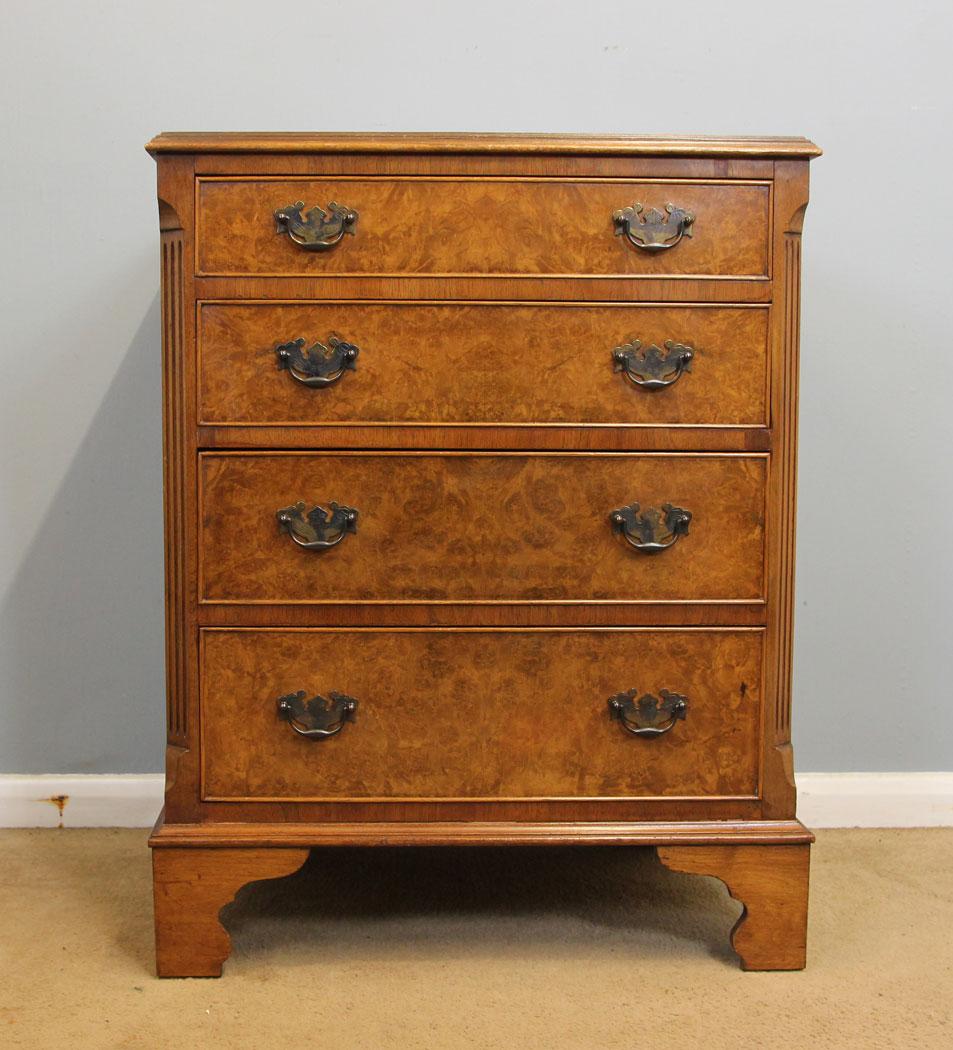 Small Burr Walnut Antique Georgian Style Chest of Drawers