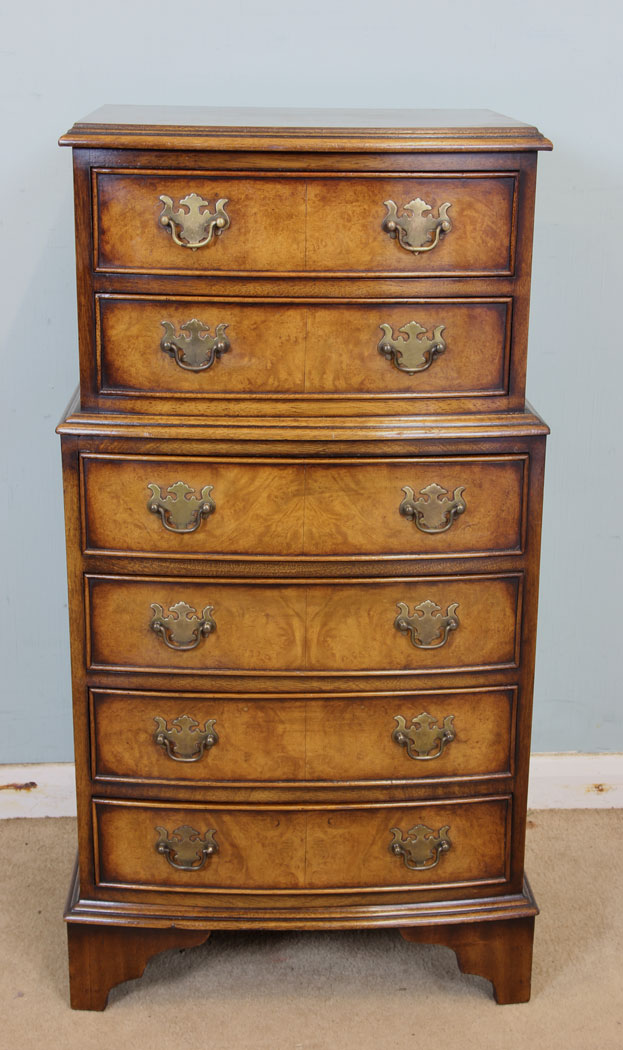 Small Burr Walnut Bow Front Chest of Drawers (1 of 1)