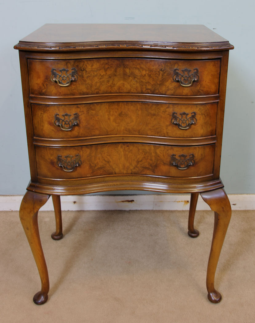 Small Burr Walnut Chest Drawers / Bedside Chest Cabinet