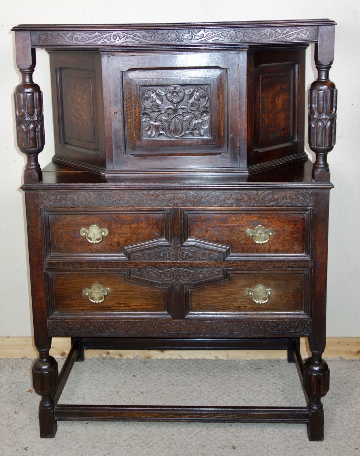 Small Carved Dark Oak Court Cupboard c.1920 (1 of 1)