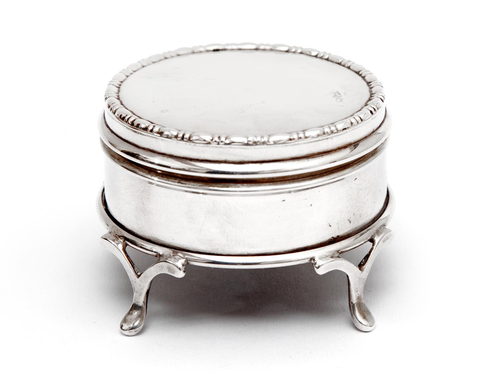 Small Circular Silver Jewellery Box with a Plain Body and Mauve Velvet Lining (1 of 5)