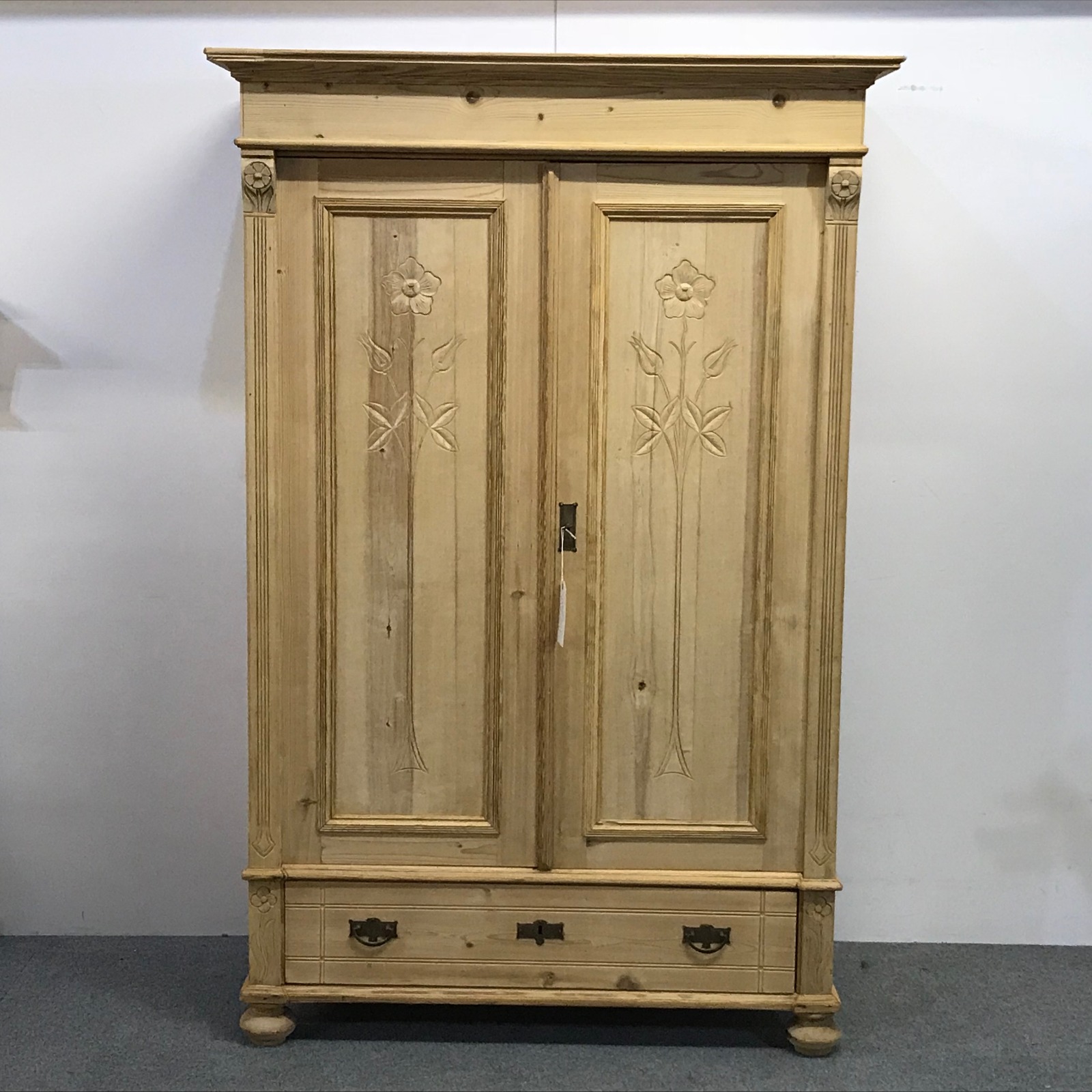 Small & Deep Double Door Antique Pine Wardrobe c.1910