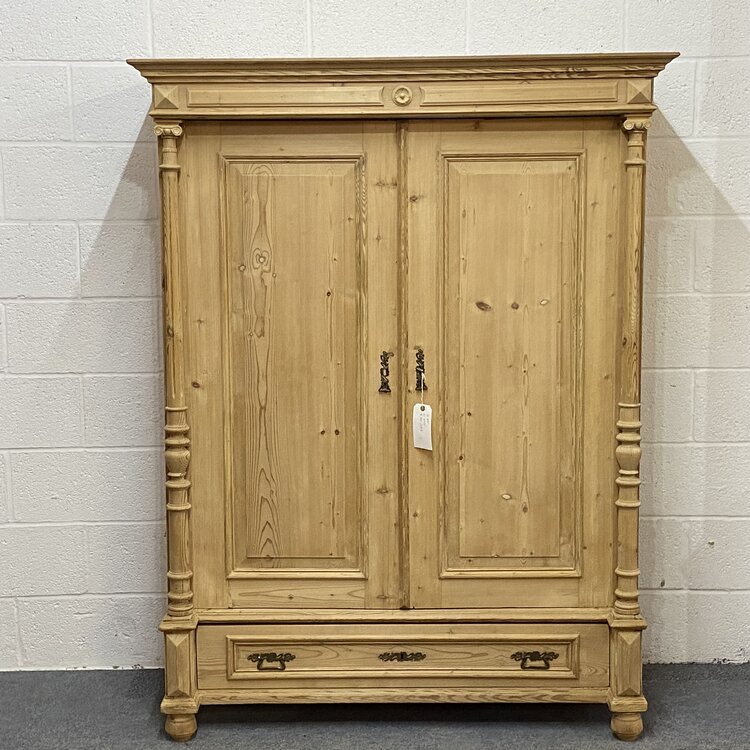 Small Double Antique Pine Wardrobe with Bottom Drawer 'Dismantles'