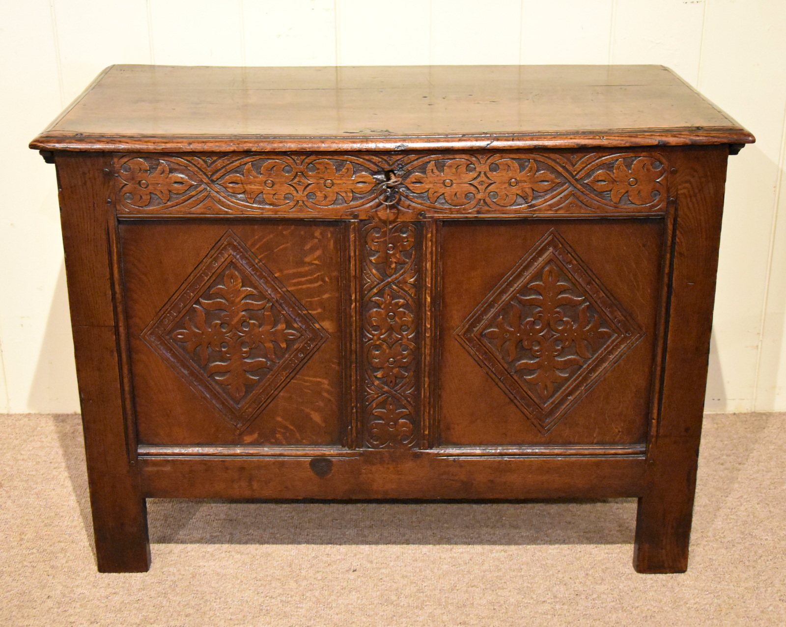 Small Early 18th Century Oak Two Panelled Coffer (1 of 1)