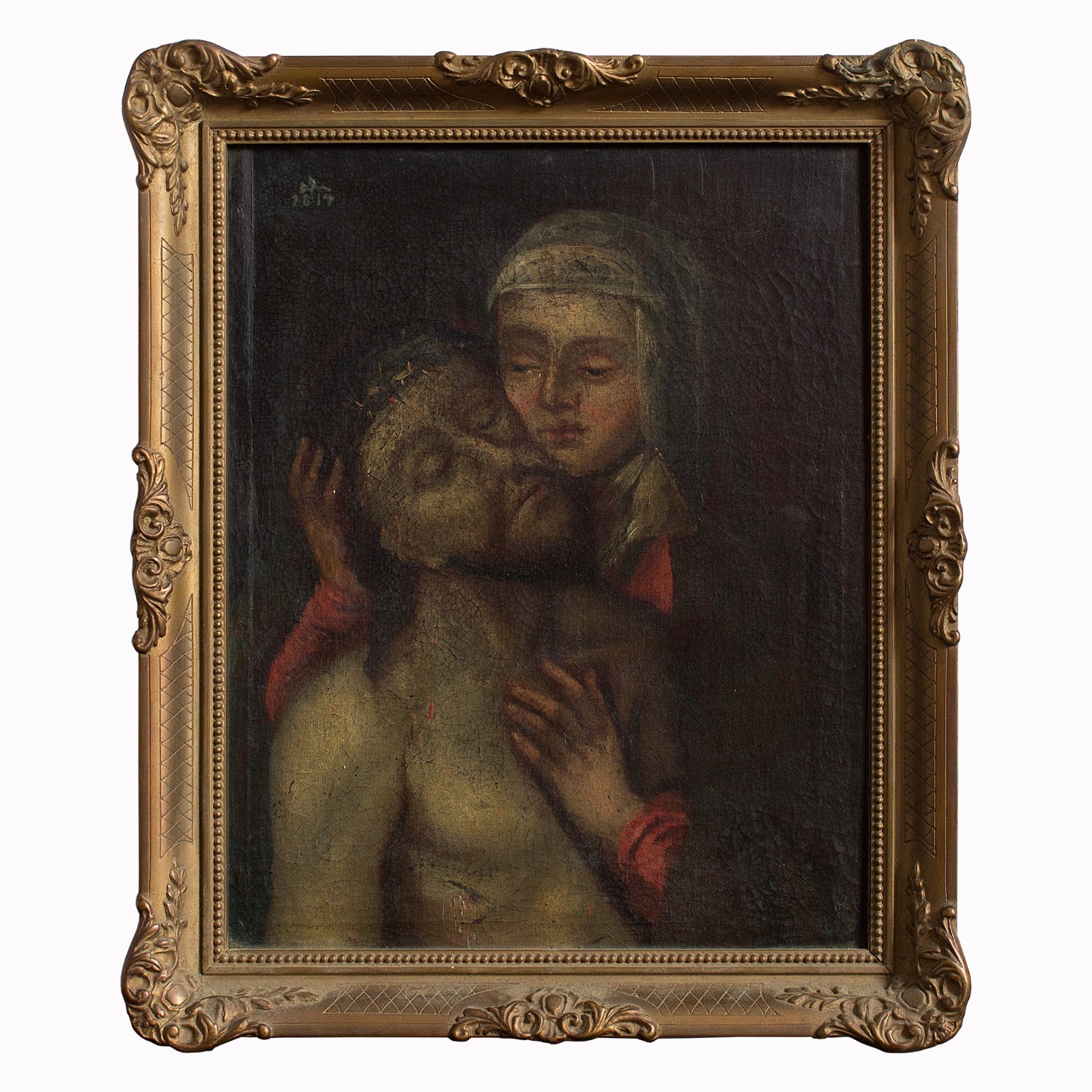 Small Early 19Th-Century 'Pieta' Religious Oil Painting