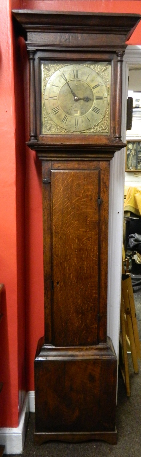 Small Early Oak Grandfather Clock - Thomas Storer, Derby