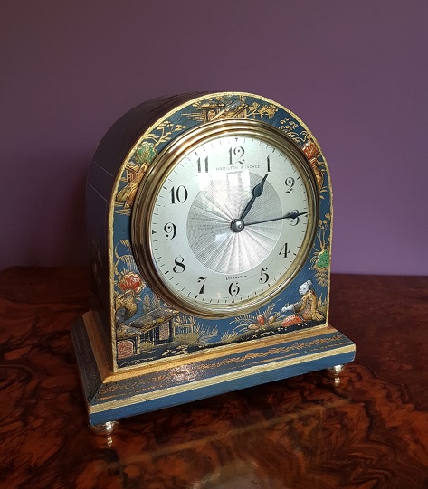 Small Edwardian Antique Edinburgh Chinioserie Mantel Clock