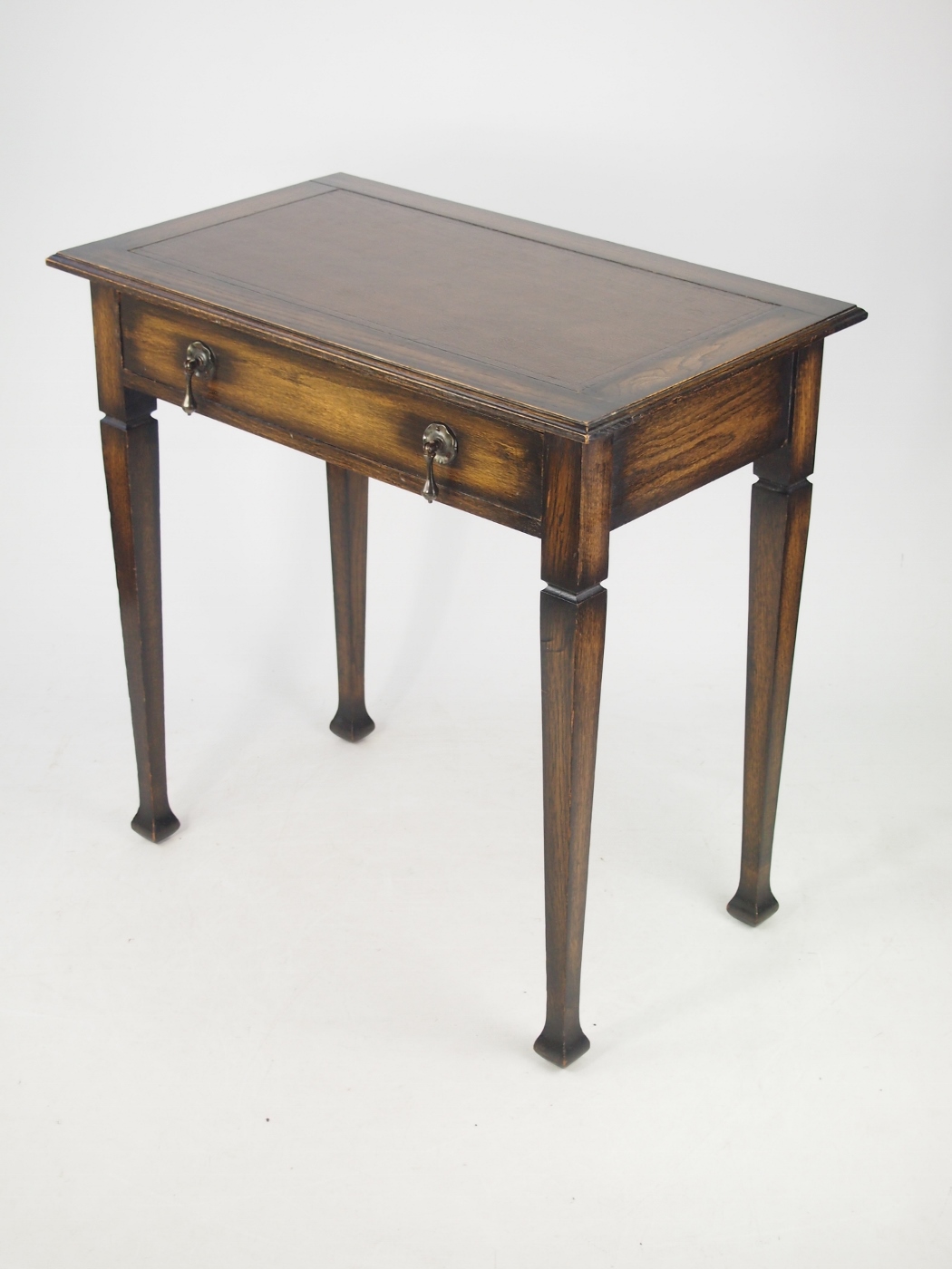Small Edwardian Arts & Crafts Oak Writing Table with Label