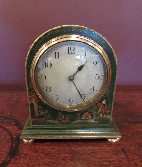 Small Edwardian Chinoiserie Lacquered Mantel Clock