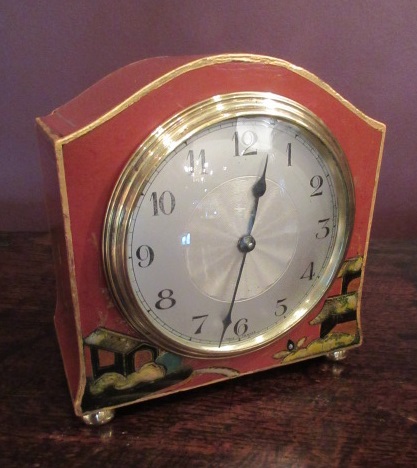 Small Edwardian Chinoiserie Lacquered Mantel Clock