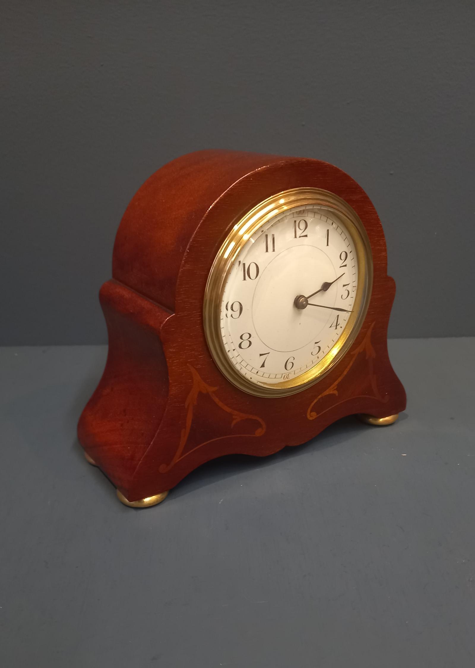 Small Edwardian Fruitwood Inlaid Mantel Clock