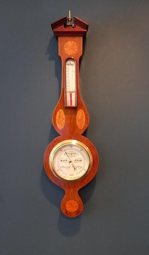 Small Edwardian Sheraton Inlaid Banjo Barometer