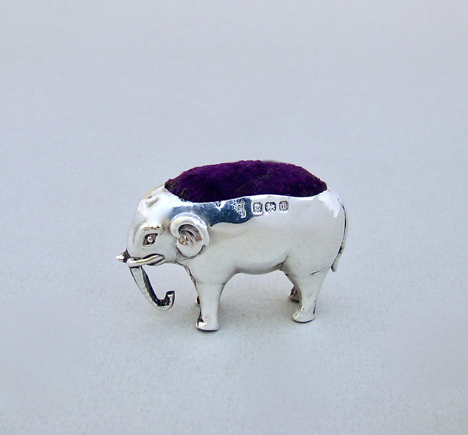 Small Edwardian Sterling Silver Elephant Pin Cushion by the Boots Company, Birmingham 1908