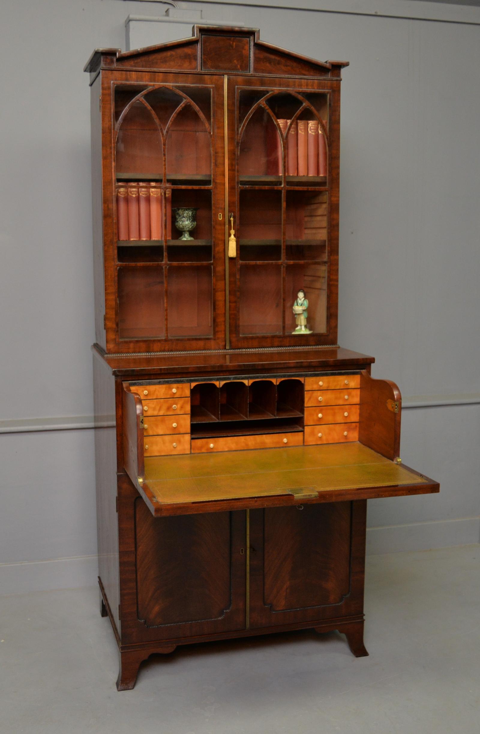 Small & Elegant Regency Mahogany Secretaire Bookcase Desk