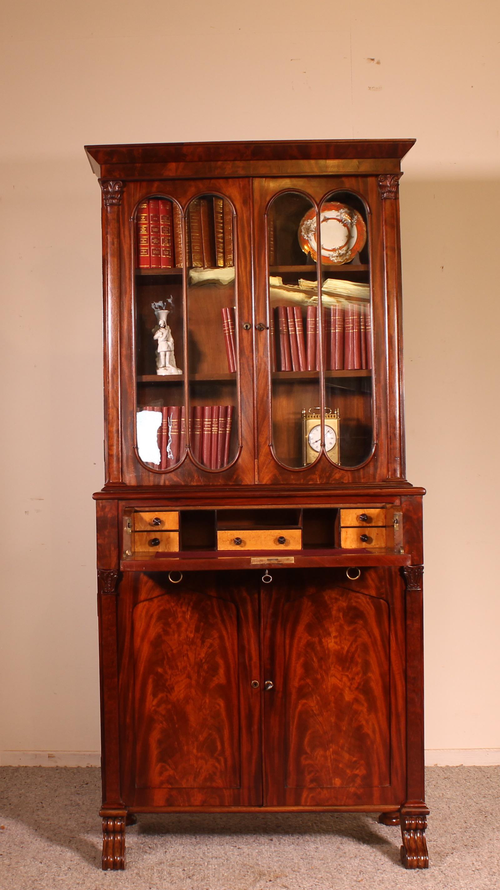 Small English Bookcase With Secretaire From The 19th Century In Mahogany