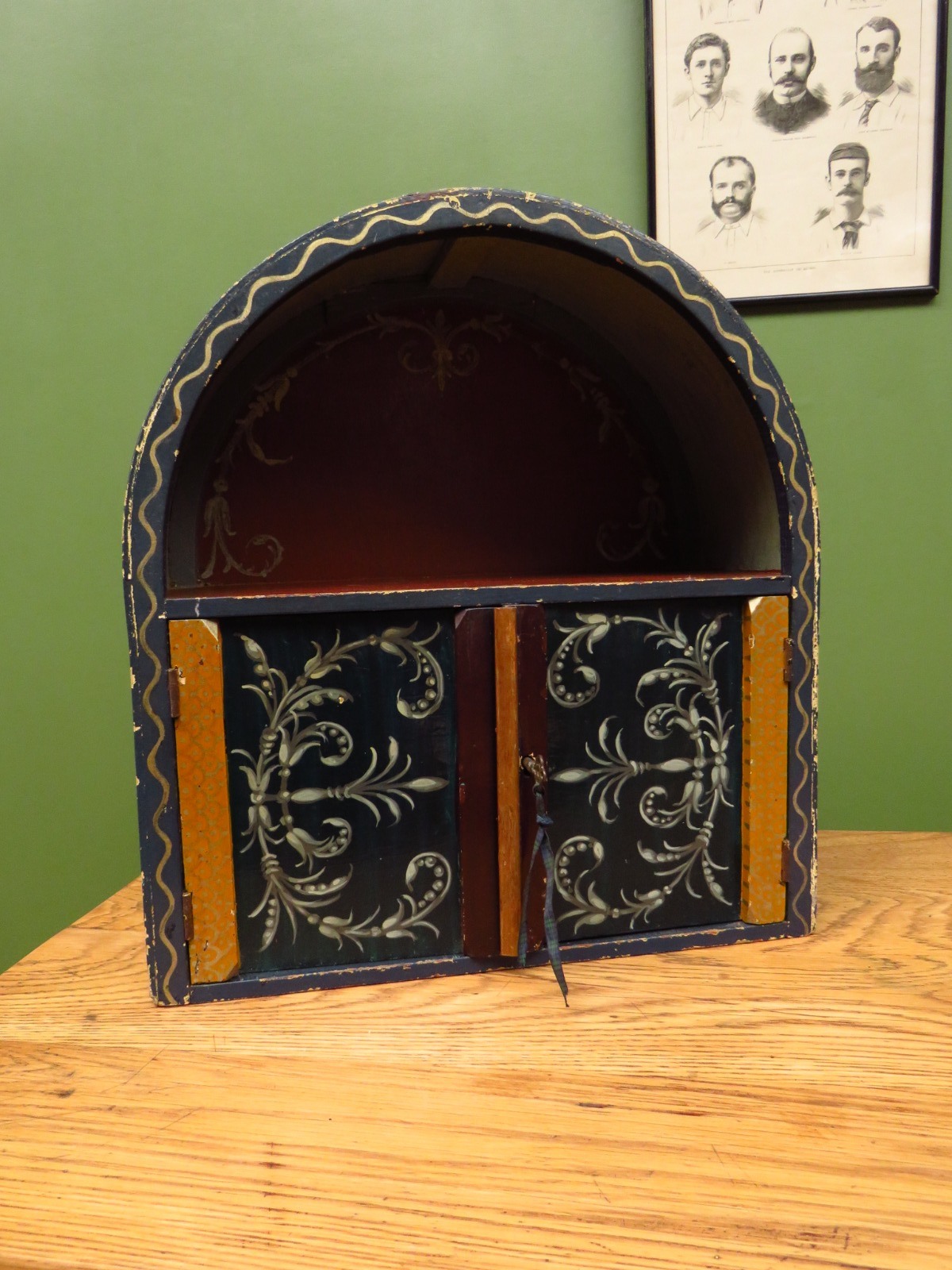 Small Folk Art Painted Wall Cabinet, Romany, Eastern European Hand Painted