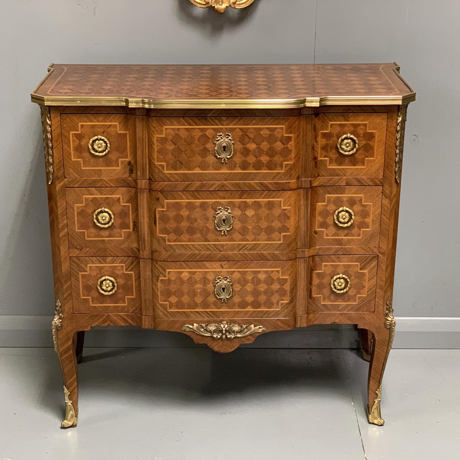 Small French kingwood parquetry chest of drawers (1 of 7)