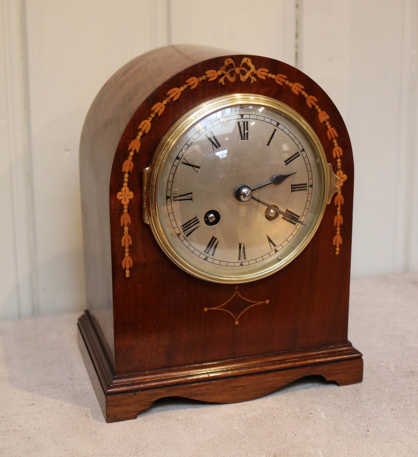 Small French Mahogany & Inlaid Mantel Clock c.1910