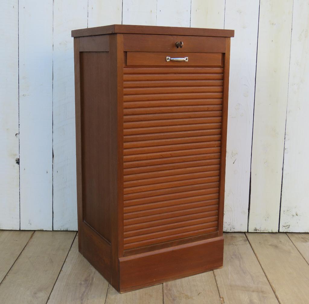 Small French Oak Tambour Front Filing Cabinet