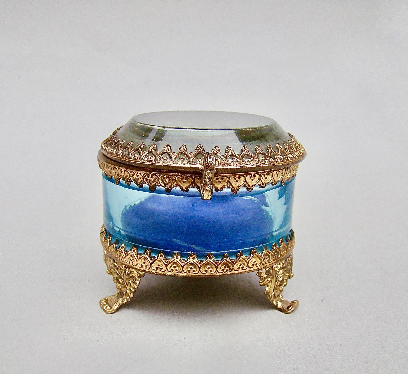 Small French Ormulu & Pale Turquoise Glass Trinket Box c.1890