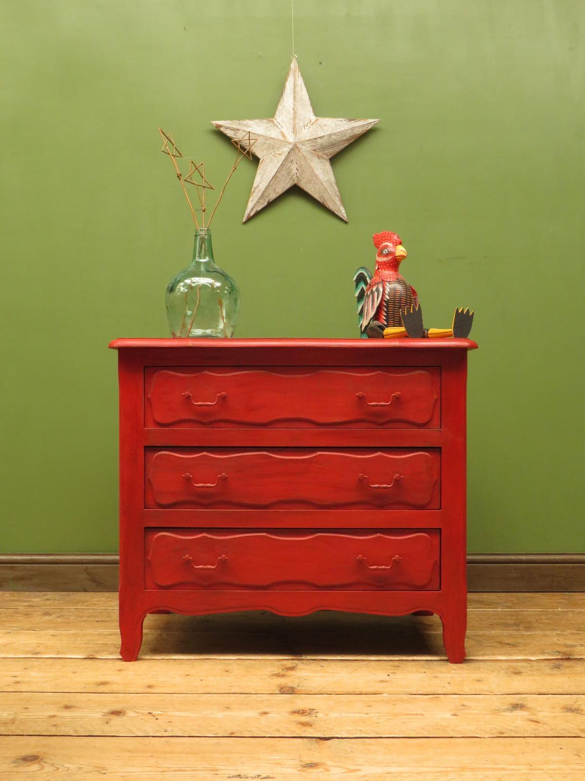 Small French Red Chest of Drawers with Star Design, Childs Circus Themed Chest