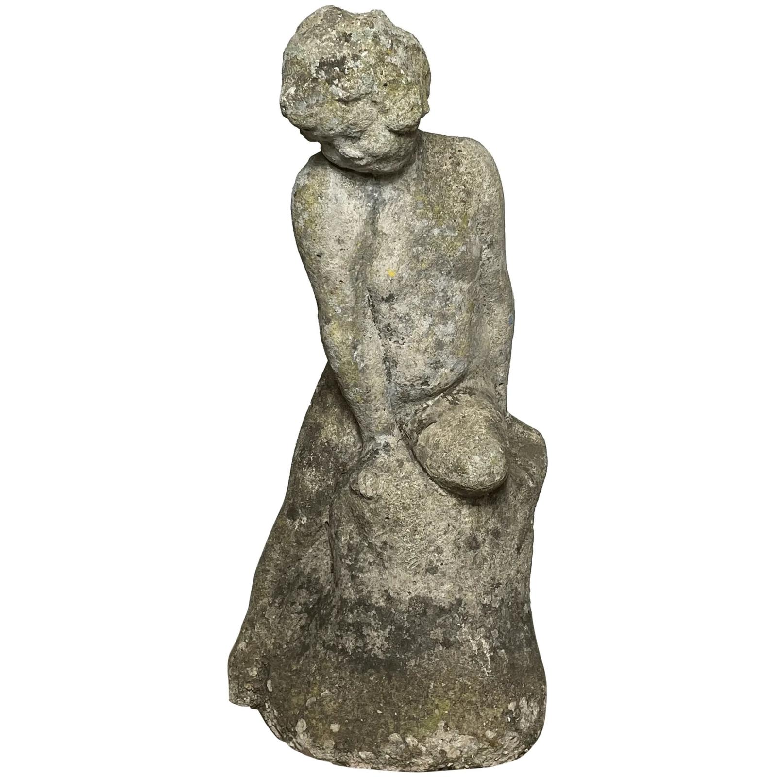 Small French Stone Boy Sitting Leaning Garden Ornament
