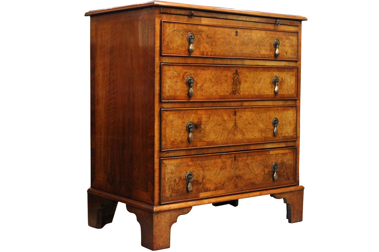 Small George II Style Burr Walnut Chest of Drawers c.1900
