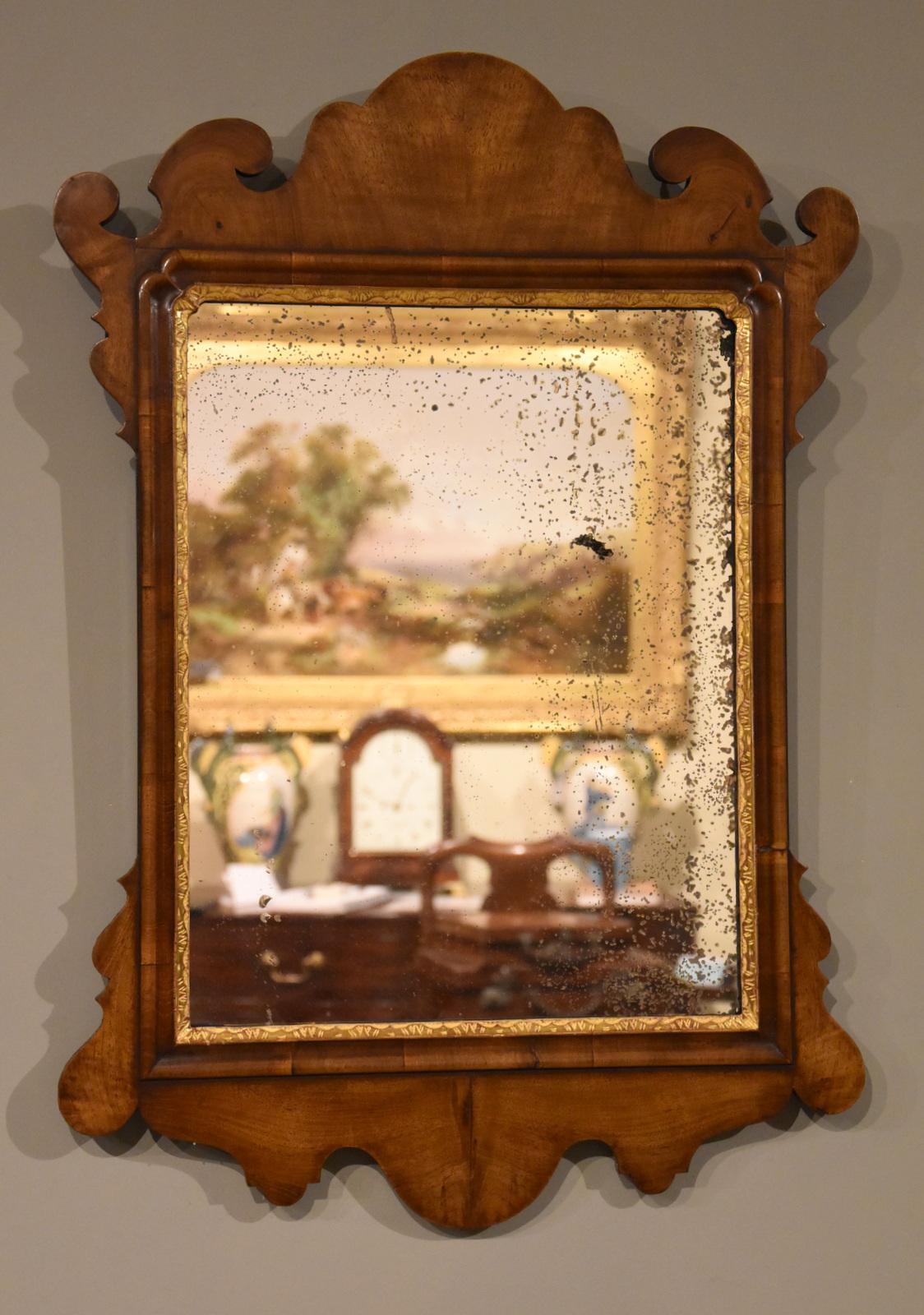 Small George II Walnut Wall Mirror
